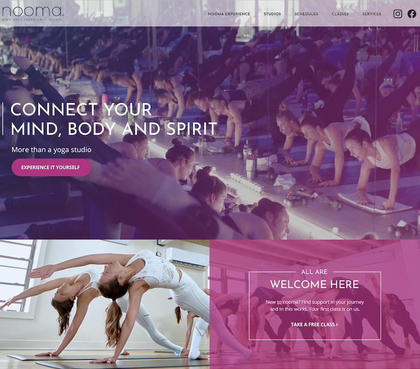 The newly designed website now makes nooma look professional and captures the energy of the studio through lively colors and videos. The layout was streamlined to make it easier to drive visitors to the website’s primary call to action (CTA): Encouraging prospective members to learn more about the studio and the classes offered. Simplifying the navigation also improved the user experience — when visitors land on the homepage, they should not feel overwhelmed.