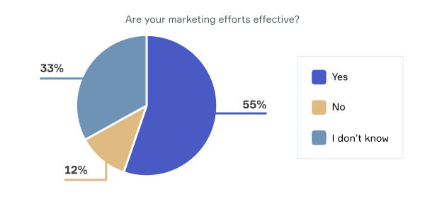 According to this 2019 report, 55 percent of respondents think their marketing is effective. This is up from 37 percent last year, but there are still improvements to be made. That’s where analytics can help: It relies on metrics to figure out the return on investment and identify improvement opportunities.