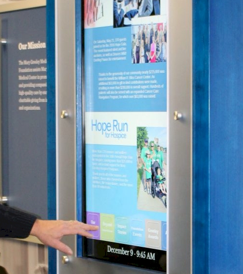 Evolve Media was asked to design the donor wall along with interactive and engaging touch screen content for the display that is featured there. We created the first ever used “page turning” technology effect, programming and animated behavior in an application. This tech has since been used in many other applications and uses through out the world.